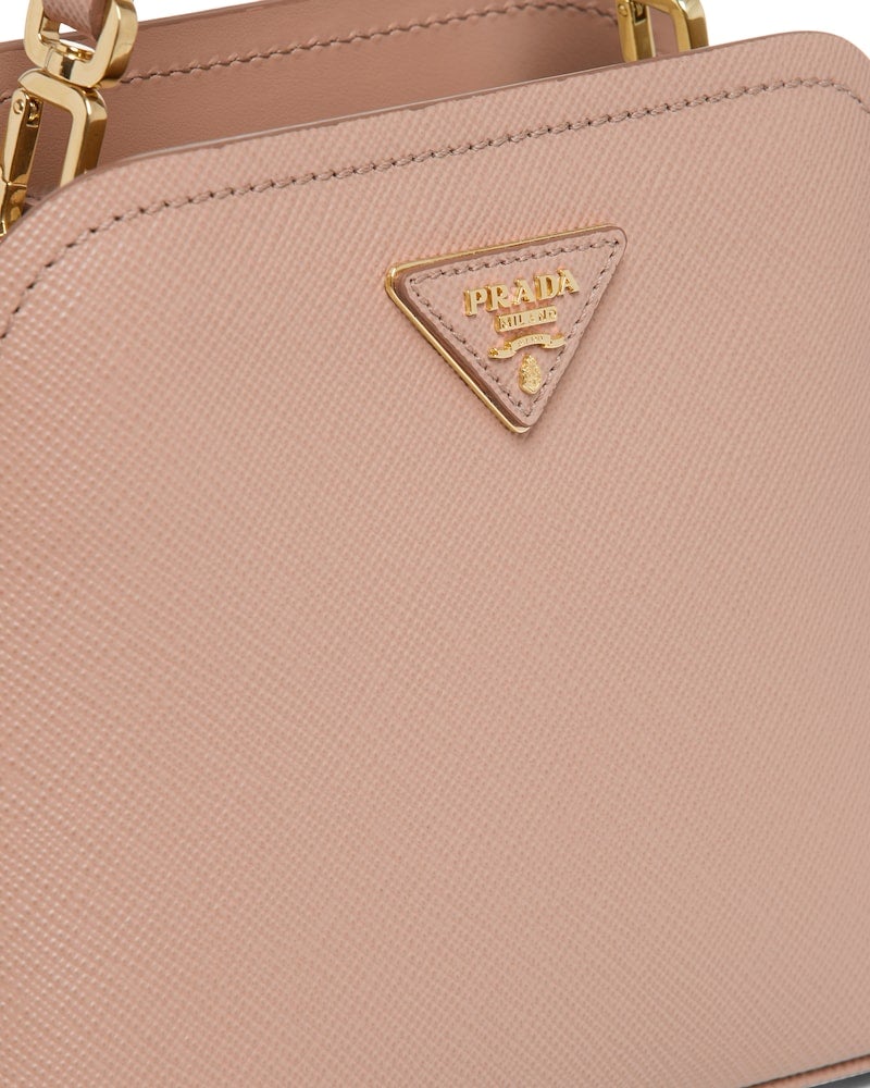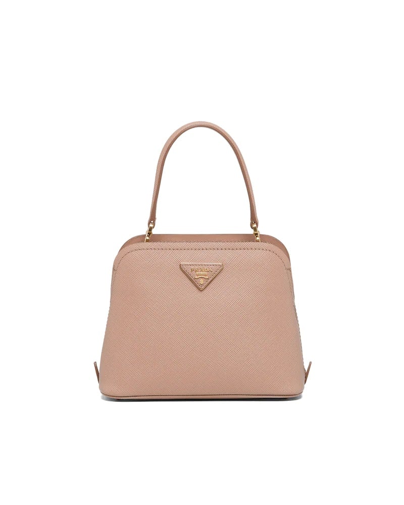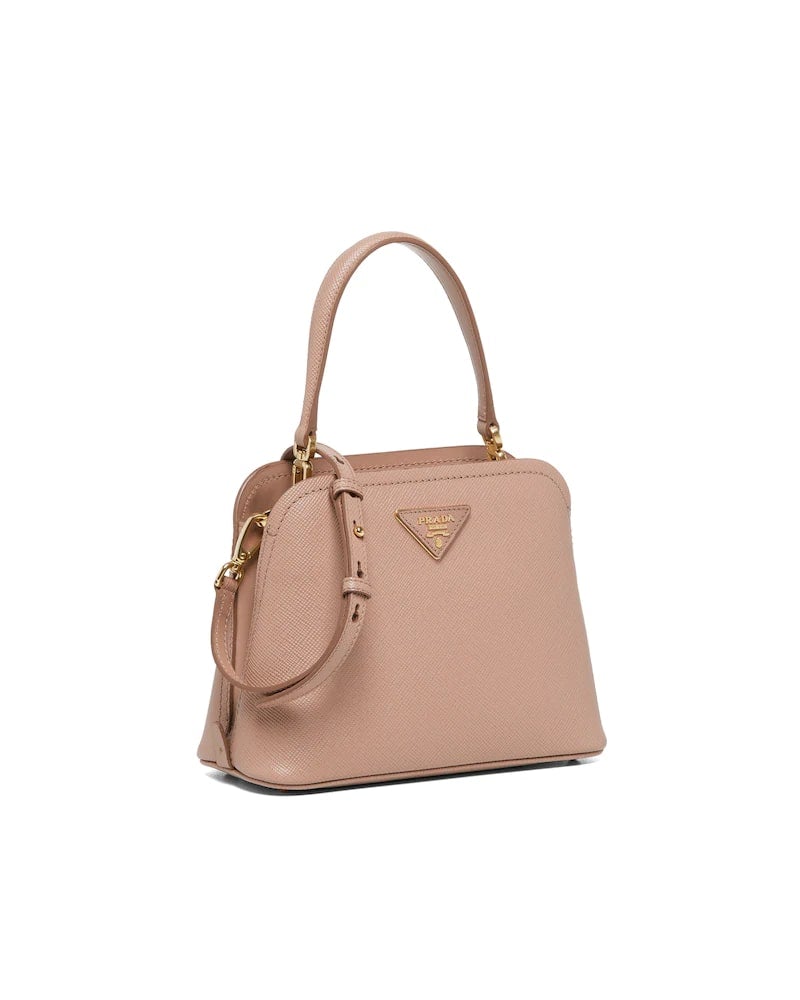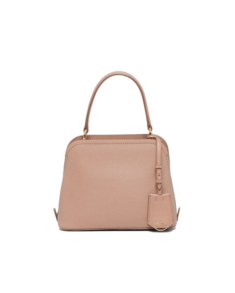 The Prada Matinée bag is defined by its soft lines. The accessory with shoulder strap and name tag evokes modern femininity and is made of Saffiano leather, an iconic material of the brand characterized by the crosshatch motif and waxed finish. The triangle logo, first introduced on the trunks designed by Mario Prada, decorates the front.