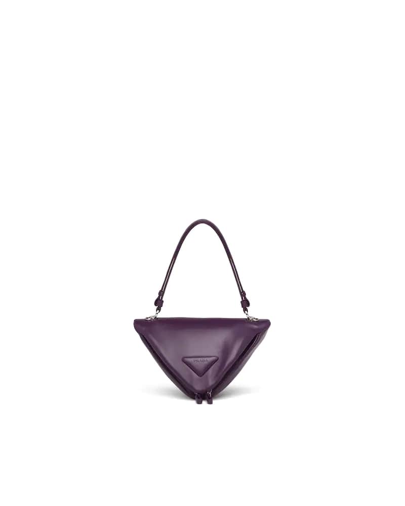 A study of the triangle inspires new shapes and novel interpretations of Prada's historic code. The iconic shape inspires the design of this handbag with soft reverse stitch construction, completed by a handle and detachable shoulder strap that lets it be worn in different ways.