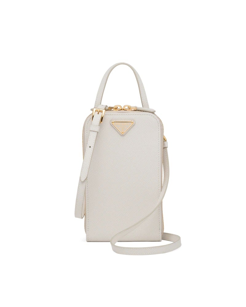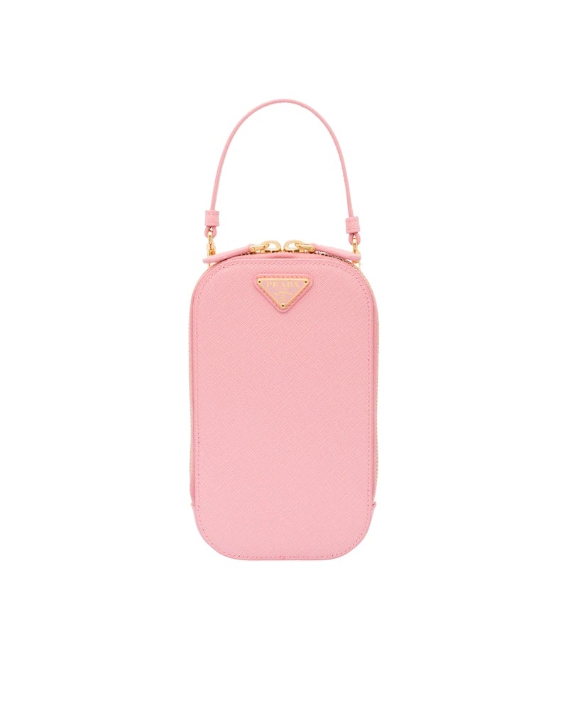 The triangle logo, which first appeared in the history of the brand on trunks designed by Mario Prada, enhances this contemporary accessory: the mini bag with leather handle and metal hardware, completed by an adjustable leather shoulder strap so it can be worn as a cross-body or shoulder bag.