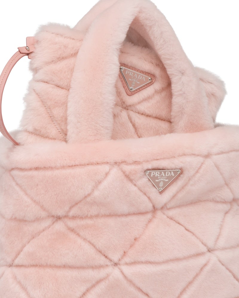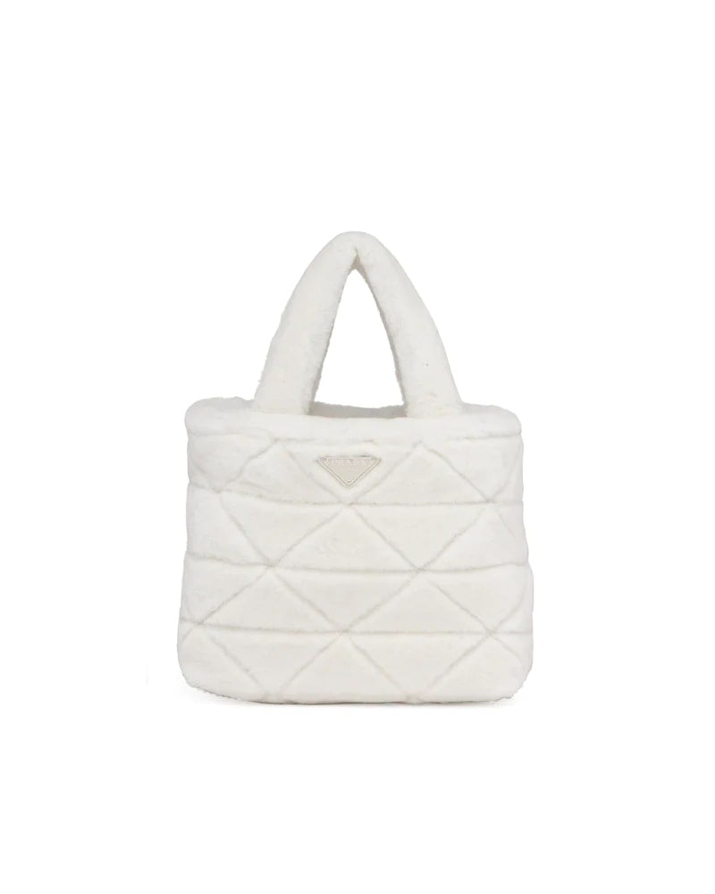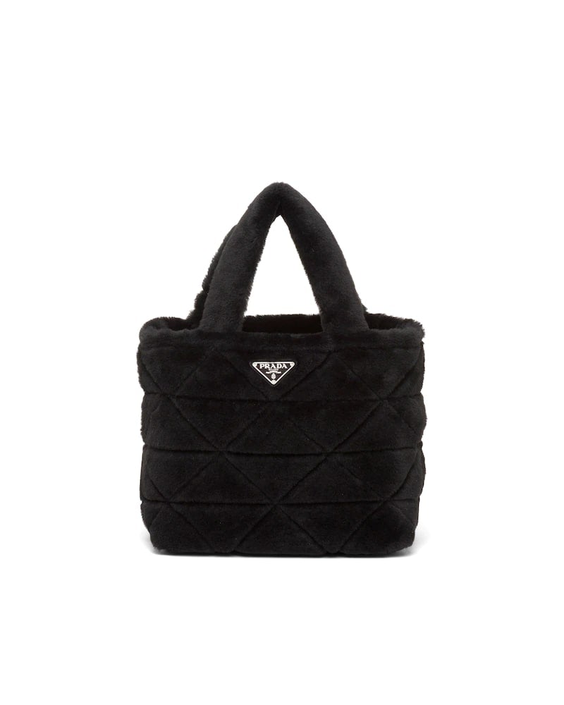 Prada's iconic triangle logo is reimagined in the stitched motif decorating this soft shearling tote. Completed by a detachable adjustable shoulder strap, the bag has a shearling pouch with zipper inside.